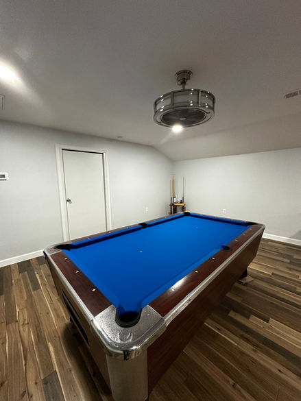The Groom's Suite offers an outside deck, seating for the groom's party, mirrors and changing area, area to hang suits, pool table, shuffleboard, bar, refrigerator and more for entertainment.